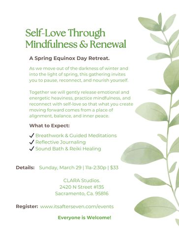 Bring your yoga mat, an open heart and an open mind as we release the weight of winter and welcome the light within. Blankets are optional; journals will be provided.